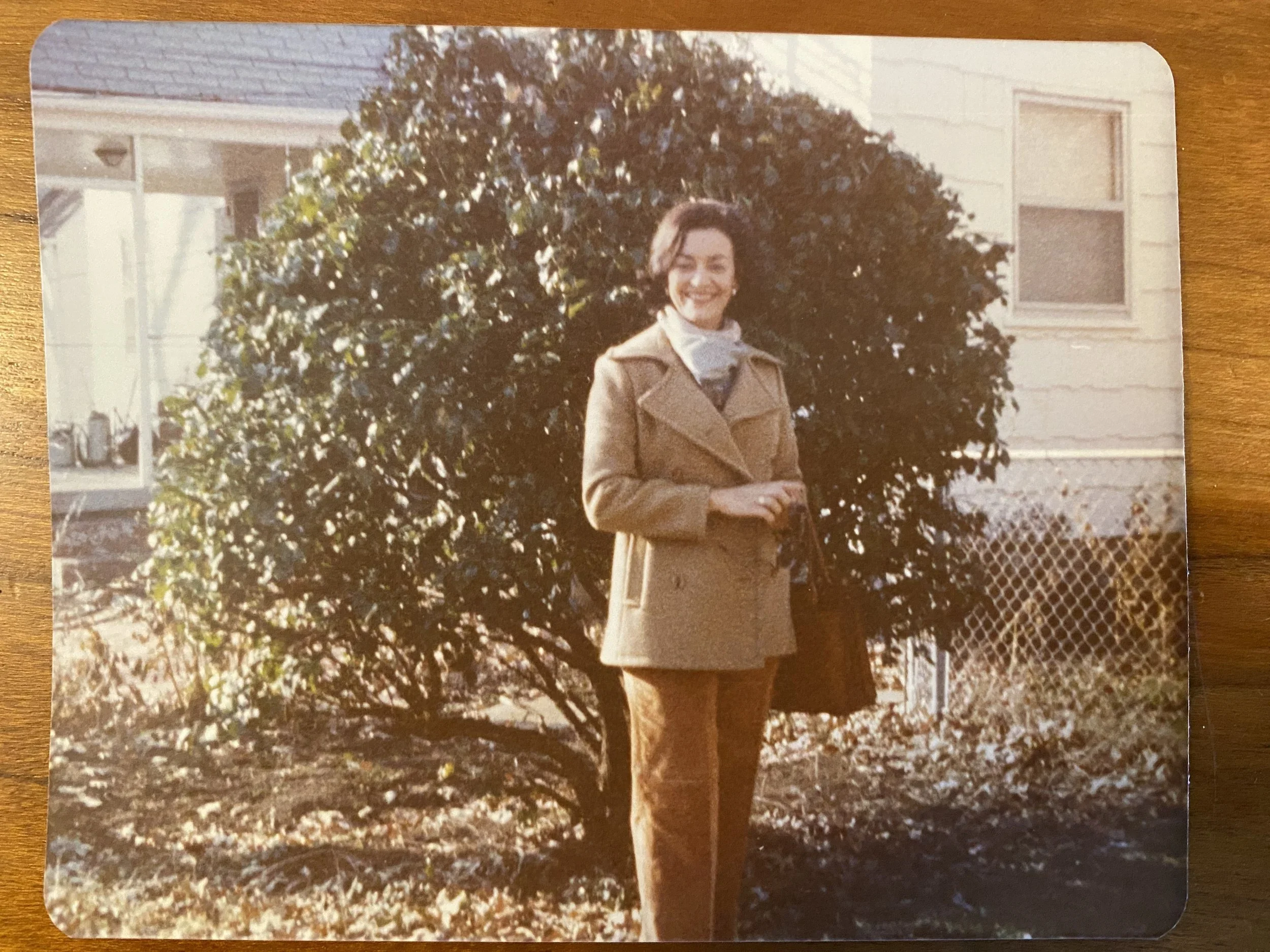 My mother standing in front of a tree circa 1978