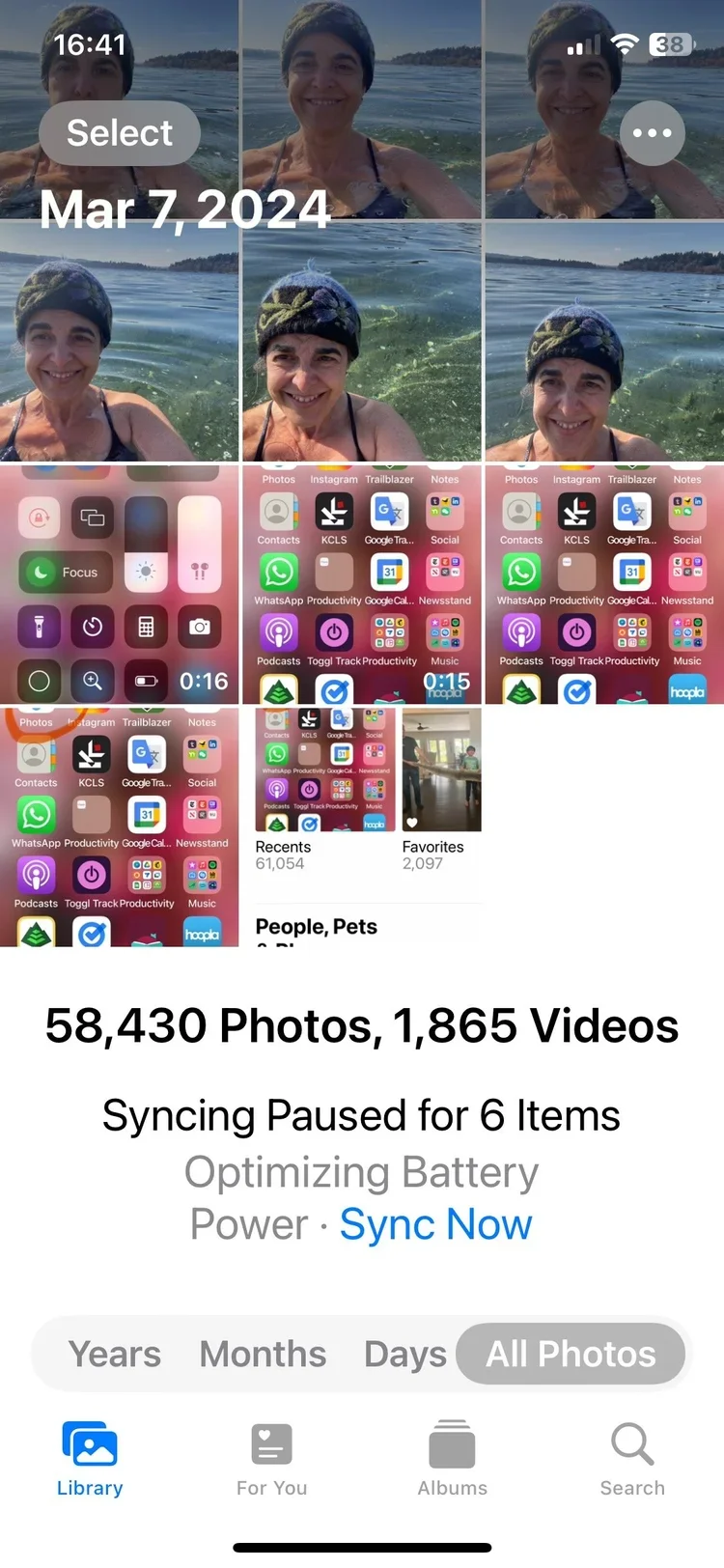 Step Two. Click Library and All Photos. You should see the total number of photos you have on this iPhone. For this phone it is 58,430. That’s a lot!